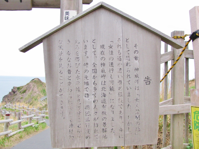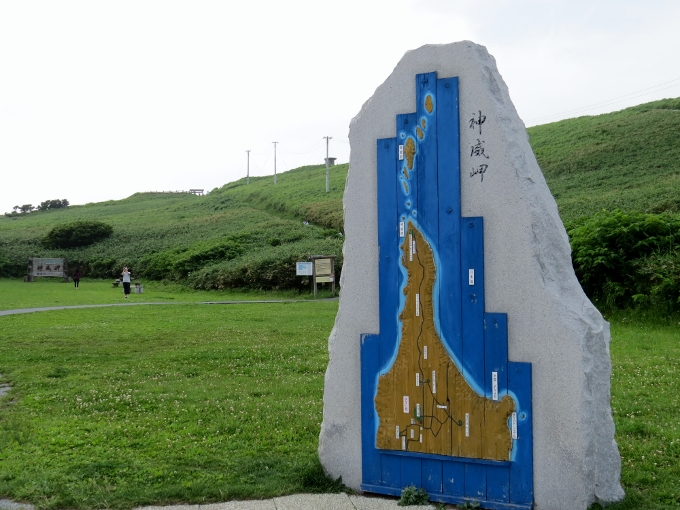神威岬の先端までは、駐車場から少々歩きます。20分ほどの岬への狭い道をちょっとした登山気分で進むことになります。ので、スニーカーなど歩きやすい靴が望ましいです。
