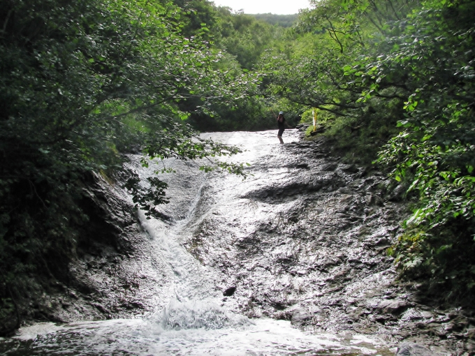駐車場からおりて、川を登っていくスポットです。