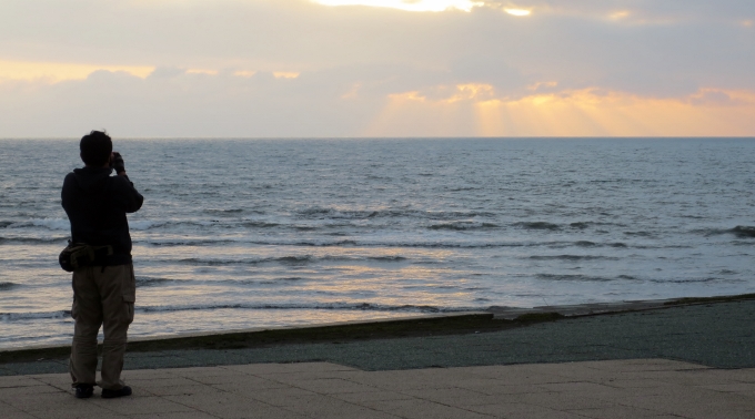 天気は曇りでしたが、雲の合間からの夕焼けの光が美しかったです。
