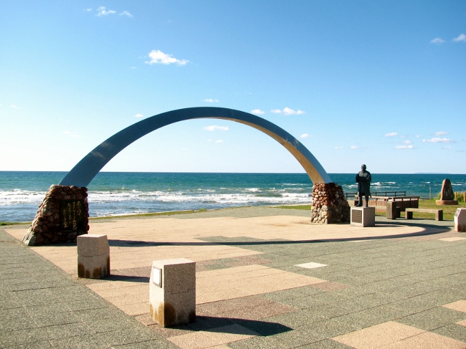 オロロンラインを挟んで海側には、こんなアーチのモニュメントがありました。