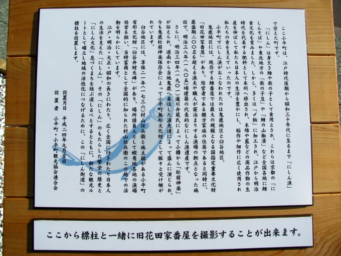 売店 観光交流センター(歴史文化保存展示ホール・特産品販売コーナー) 9:00~18:00(12月~3月まで10:00~17:00)、旧花田家番屋 8:00~17:00(5月~10月)、9:00~16:00(11月~4月)