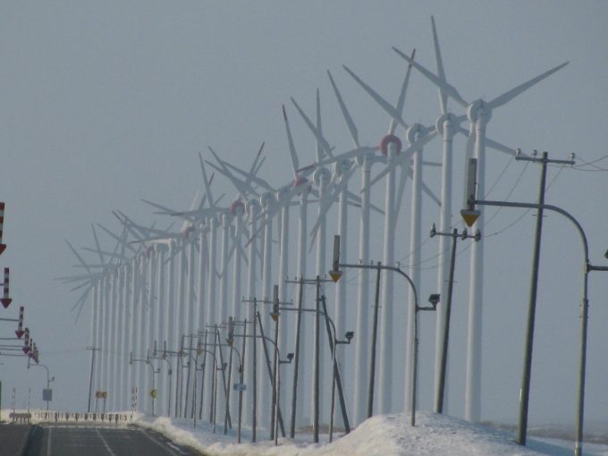 オトンルイ風力発電所は28基の巨大な風車が並んでます!