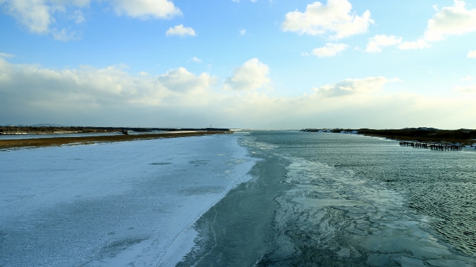 冬に天塩川が凍った景色が好きです。