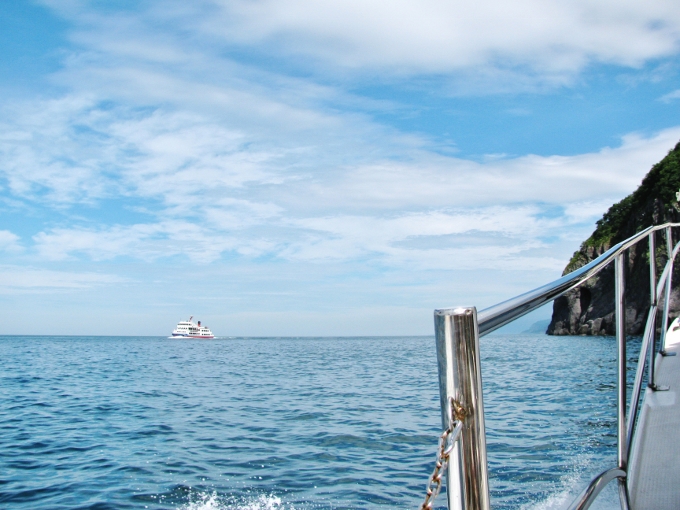 道東の旅|知床半島の観光船クルーズは、景色も最高で楽しかったです!|2011/9/9 公開日: 2011-09-09 カテゴリー: 北海道のイチオシ景色、夏の北海道旅行、道東の街の景色やスポット、斜里町 しゃりちょう 知床半島で、観光船のクルーズ行ってきました! クルーズのお店はけっこうあるらしく、今回は【FOX】さんに決めてみました。 出発! 小さな船でしたが、逆に海を近くに感じて臨場感満点でした。 断崖の景色がすごかったです。 なんと!ヒグマ発見! 海からなので遠くだったんですが、いましたね~、ヒグマ! シャケをとったりしてるそうですよ。 でかいです。 カムイワッカの滝 知床クルーズFOXさんの場所はこちら 今回お世話になった知床クルーズFOXさんの場所です。 【じゃらん】国内25,000軒の宿をネットで予約OK!2%ポイント還元! amazonで旅行用品を。 HOME ⇒ 季節ごとの旅 ⇒ 夏の北海道旅行 ⇒ 道東の旅|知床半島の観光船クルーズは、景色も最高で楽しかったです!|2011/9/9 人気の記事共有:Tweetいいね:いいね 読み込み中… 関連記事